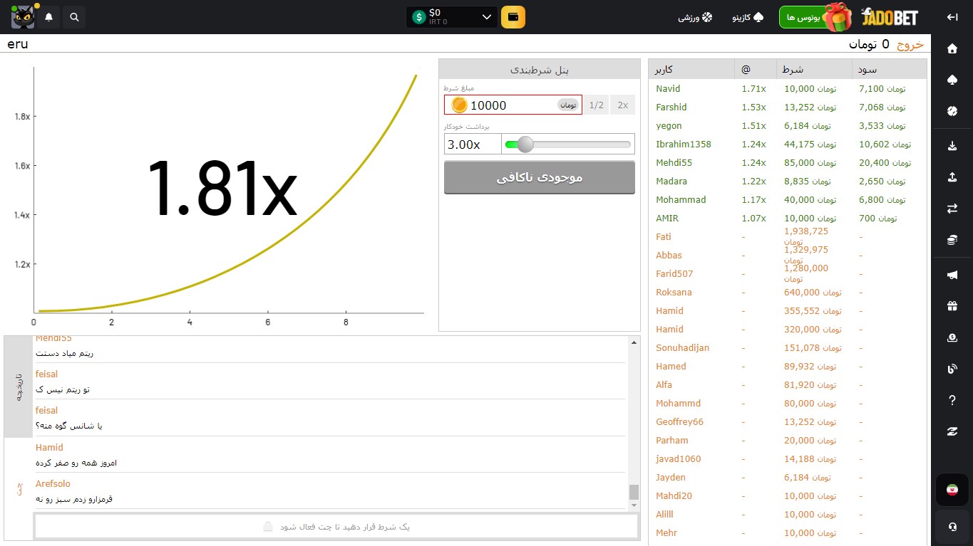 ابتدا در JadooBet ثبت نام کنید و وارد حساب کاربری خود شوید تا امکان دسترسی به بازی انفجار فراهم شود. - شارژ حساب کاربری
